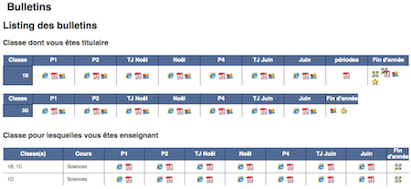 Les classes dans lesquelles vous enseignez sont clairement identifiées:
